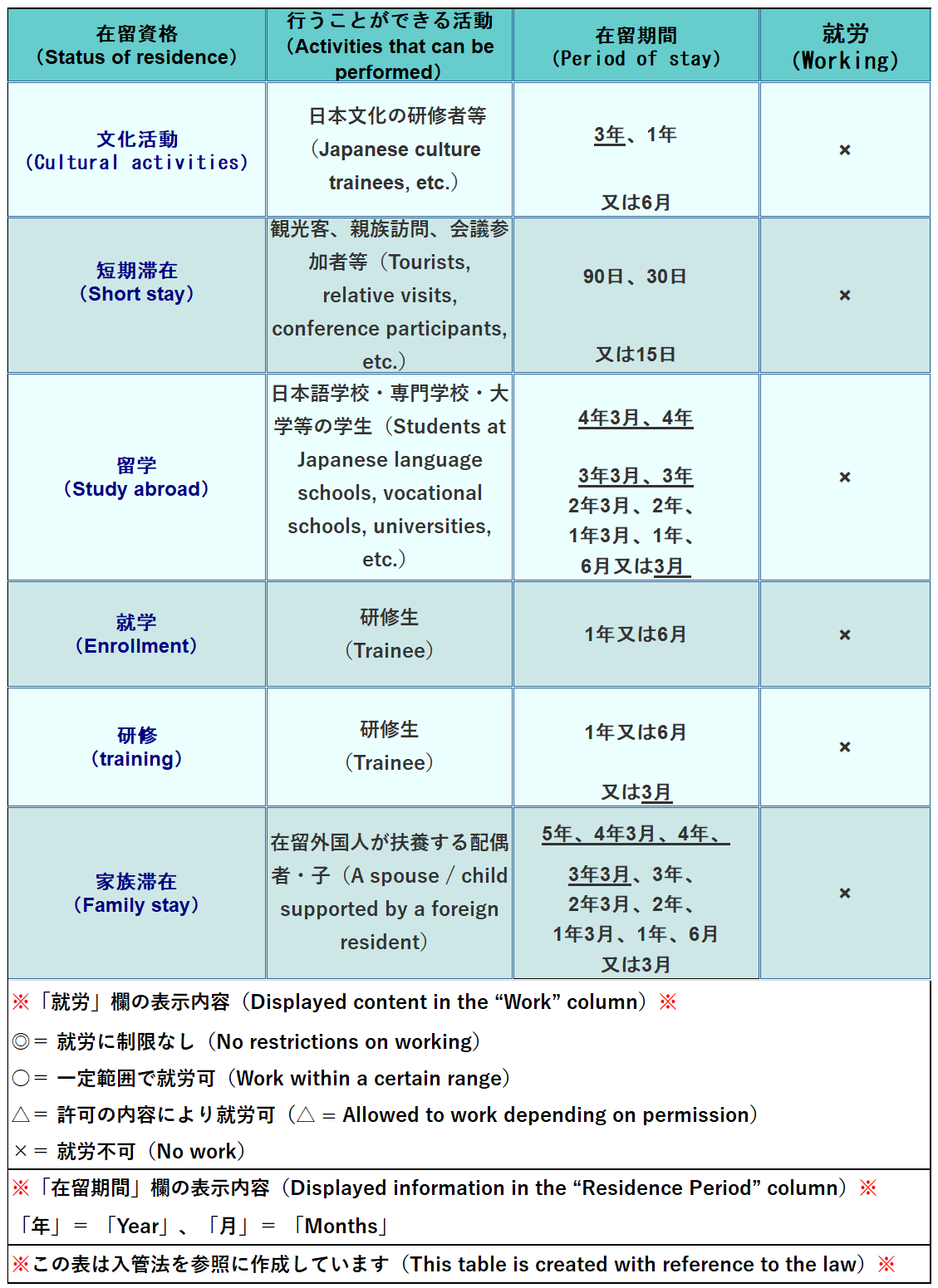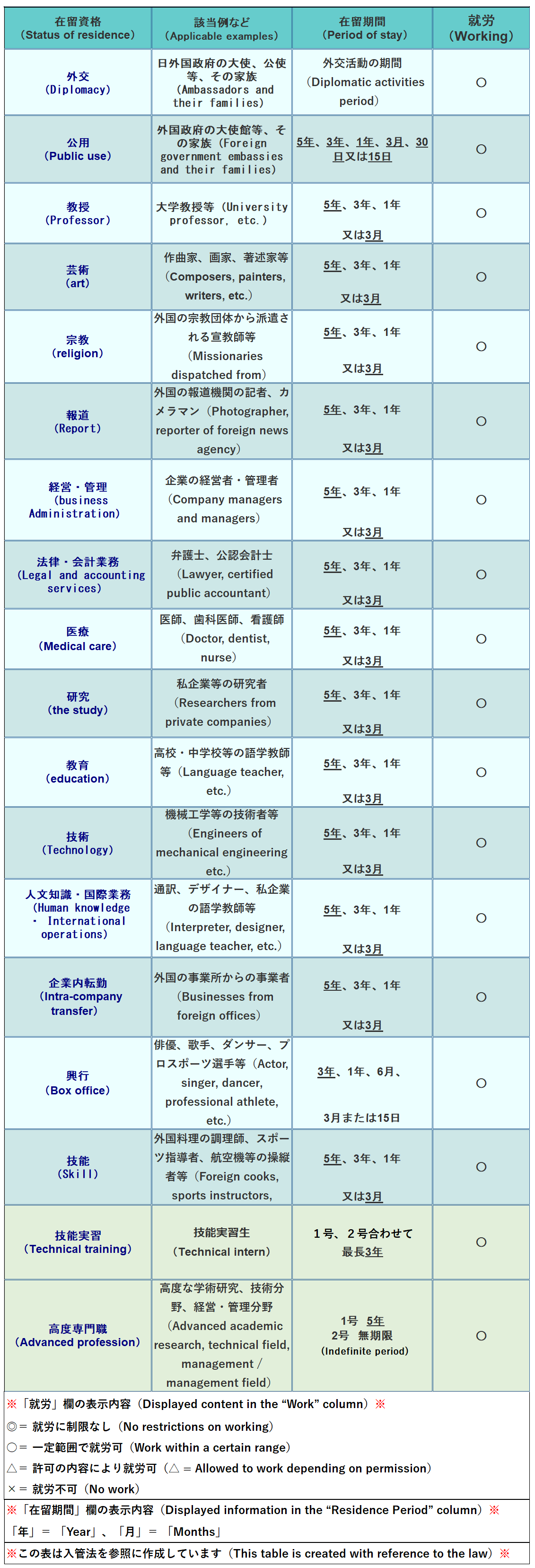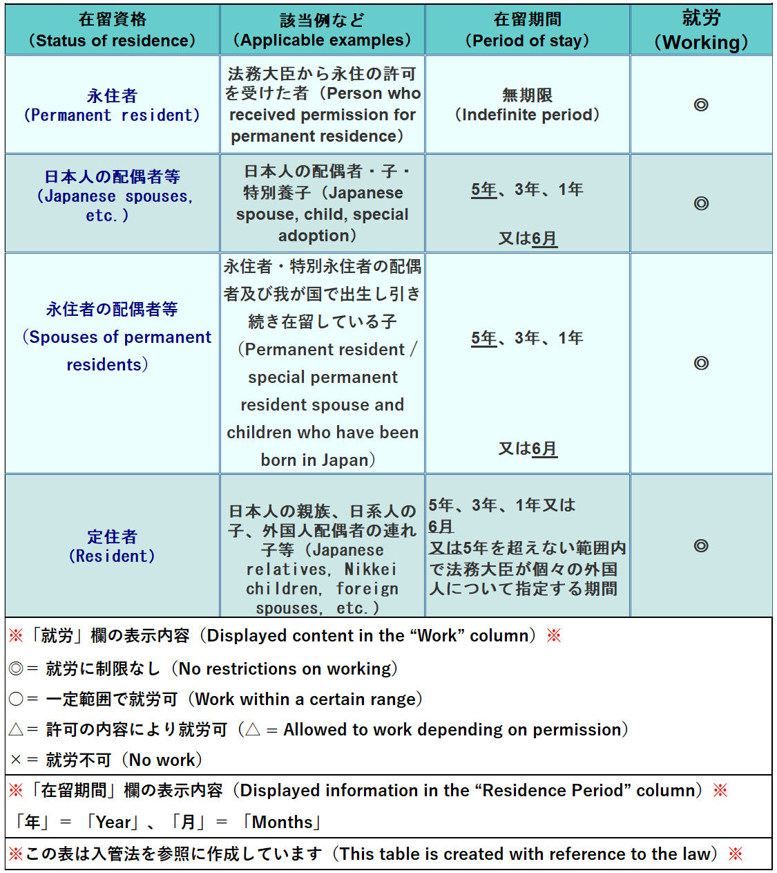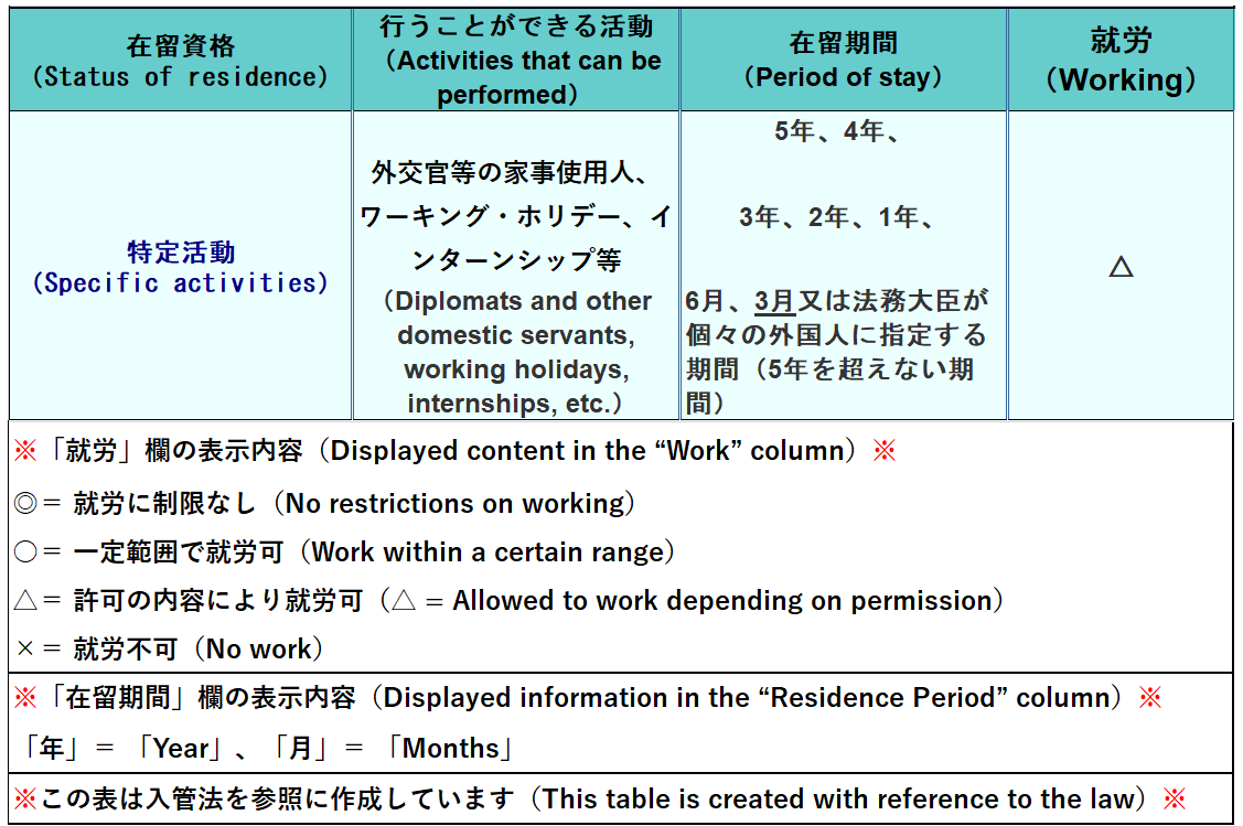 許可の内容により就労が認められる在留資格