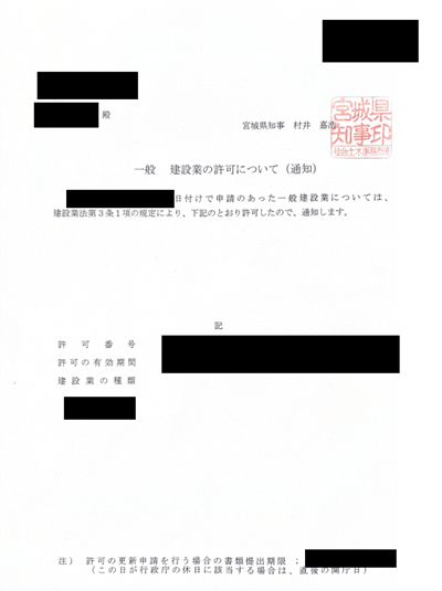 行政庁における一定期間の審査後、許可通知書が発行されます。